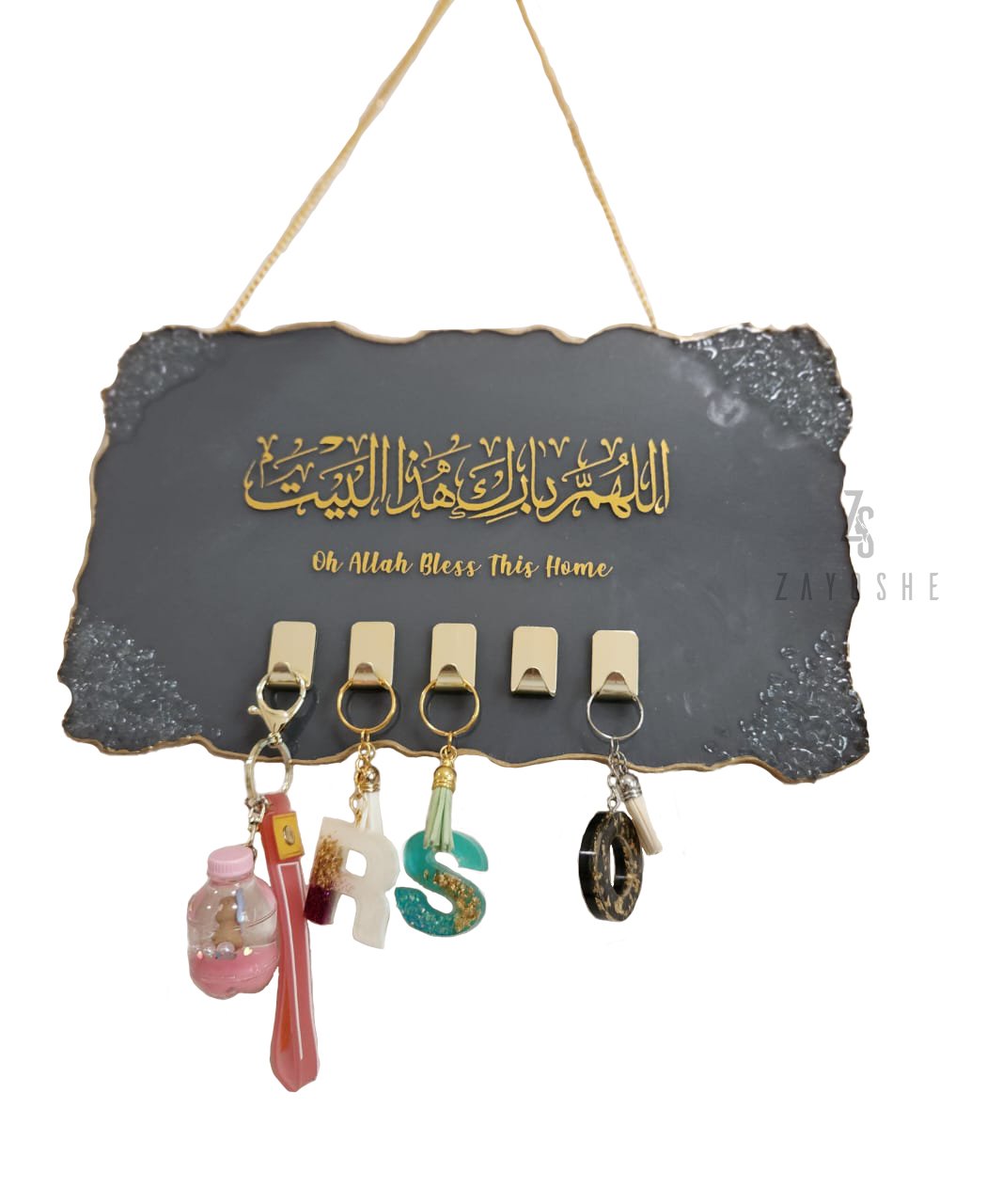 Add a touch of elegance to your home décor with this stunning personalized resin key holder. Handmade with high-quality resin, this key holder features a unique and eye-catching design. The smooth, glossy finish is sure to complement any décor, and the durable construction ensures that this key holder will last for years to come.