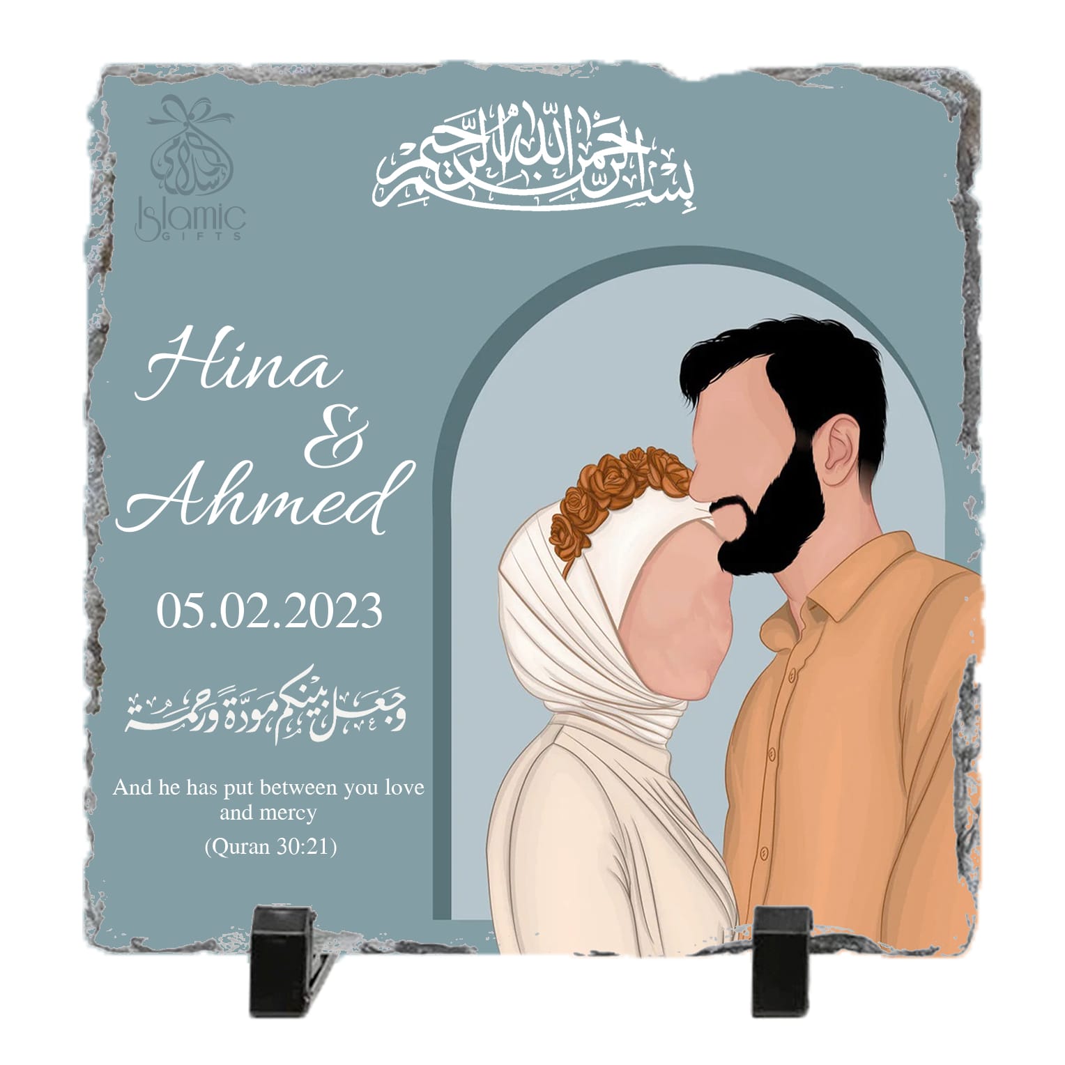 The rock slate is made from natural stone, and each one has its own unique shape and color. This makes each slate truly one-of-a-kind, just like the couple it represents.
